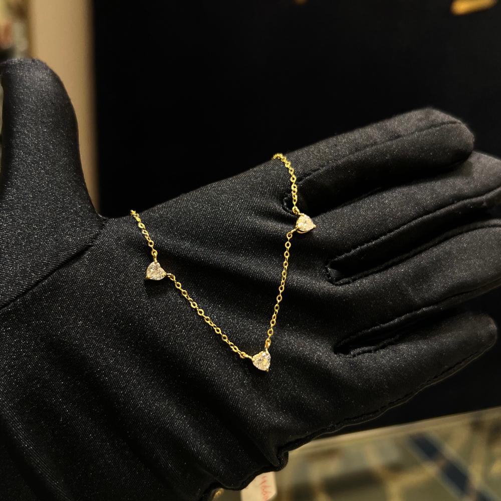 عقد ثلاث احجار بقصة حجر (Heart)الماس مخبري مع ذهب عيار18