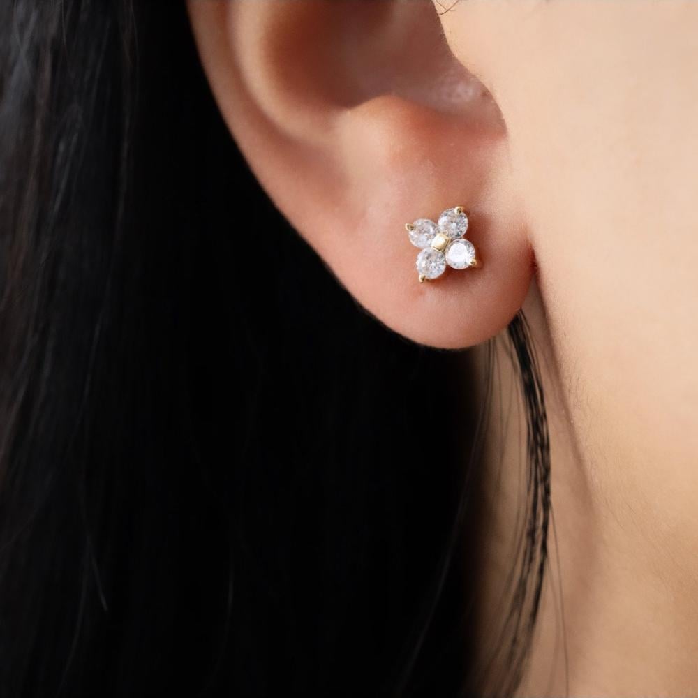 56|اقراط وردة بأربع احجار دائري